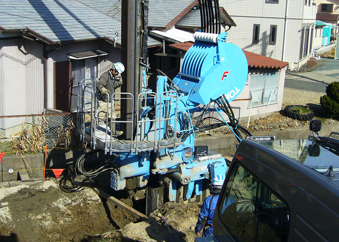 圧入工法の優位性を確保した圧入機に補助工法として、オーガ堀削と圧入を連動させる「芯抜き理論」による施工方法を採用することにより、最大N値50以上の硬質地盤へ圧入施工を行う工法です。